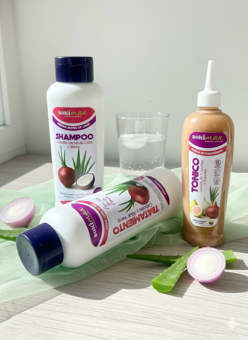 Kit de Cebolla : Un set completo de cuidado capilar que incluye shampoo, bálsamo y tónico con extracto de cebolla. Ayuda a fortalecer el cabello, estimular el crecimiento y reducir la caída, dejándolo suave, hidratado y lleno de vitalidad. Perfecto para un tratamiento reparador.